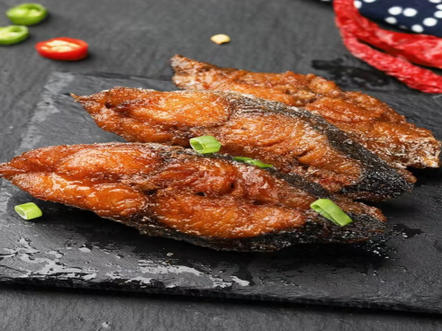 “鲅鱼跳,丈人笑”是青岛当地的一句俗语,送鲅鱼也成为当地一种独特的民俗。每当鲅鱼汛期,本地的女婿们都要给老丈人送去最新鲜的鲅鱼以尽孝道。“鲅鱼礼”也由此而来。其中最具特色的烹饪方式当属五香鲅鱼,它将鲅鱼的美味和鲜味用一种独特的方式呈现出来,酥脆可口,香气逼人,入口别有一番风味。