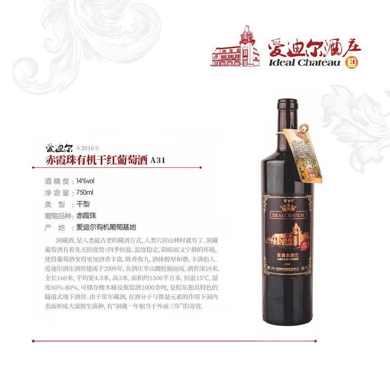 爱迪尔赤霞珠有机干红葡萄酒