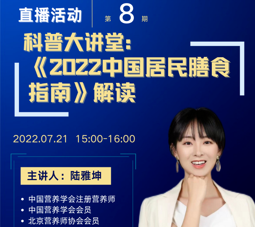 科普大讲堂预告 | 陆雅坤:《2022中国居民膳食指南》解读